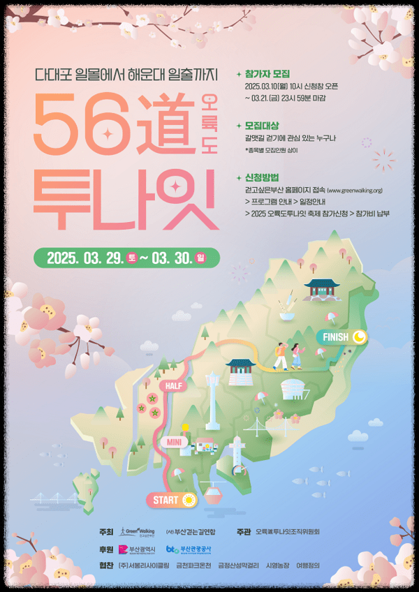 : 풀코스는 사하,강서,북,금정,동래,연제,수영,해운대구를 관통하는 코스입니다. 풀코스완주시 종료예정 시간은 익일